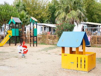 Een gratis pendeltreintje verbindt de camping met het strand (juli/augustus: één rit per 45 minuten / laatste twee weken van juni en eerste twee weken van september: vier ritten per dag).